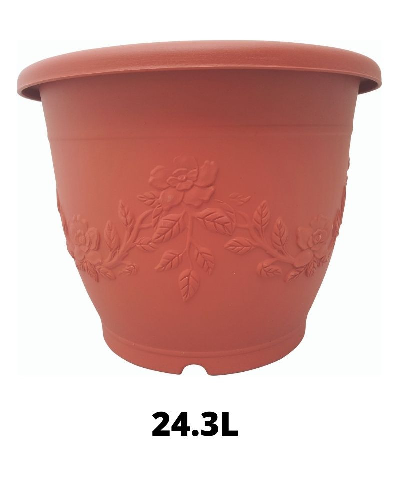 Son design avec motifs floraux en relief et sa couleur rouge chaleureuse en font un excellent choix pour embellir vos espaces extérieurs comme intérieurs. Son format intermédiaire est parfait pour accueillir plantes vertes, fleurs ou petits arbustes.