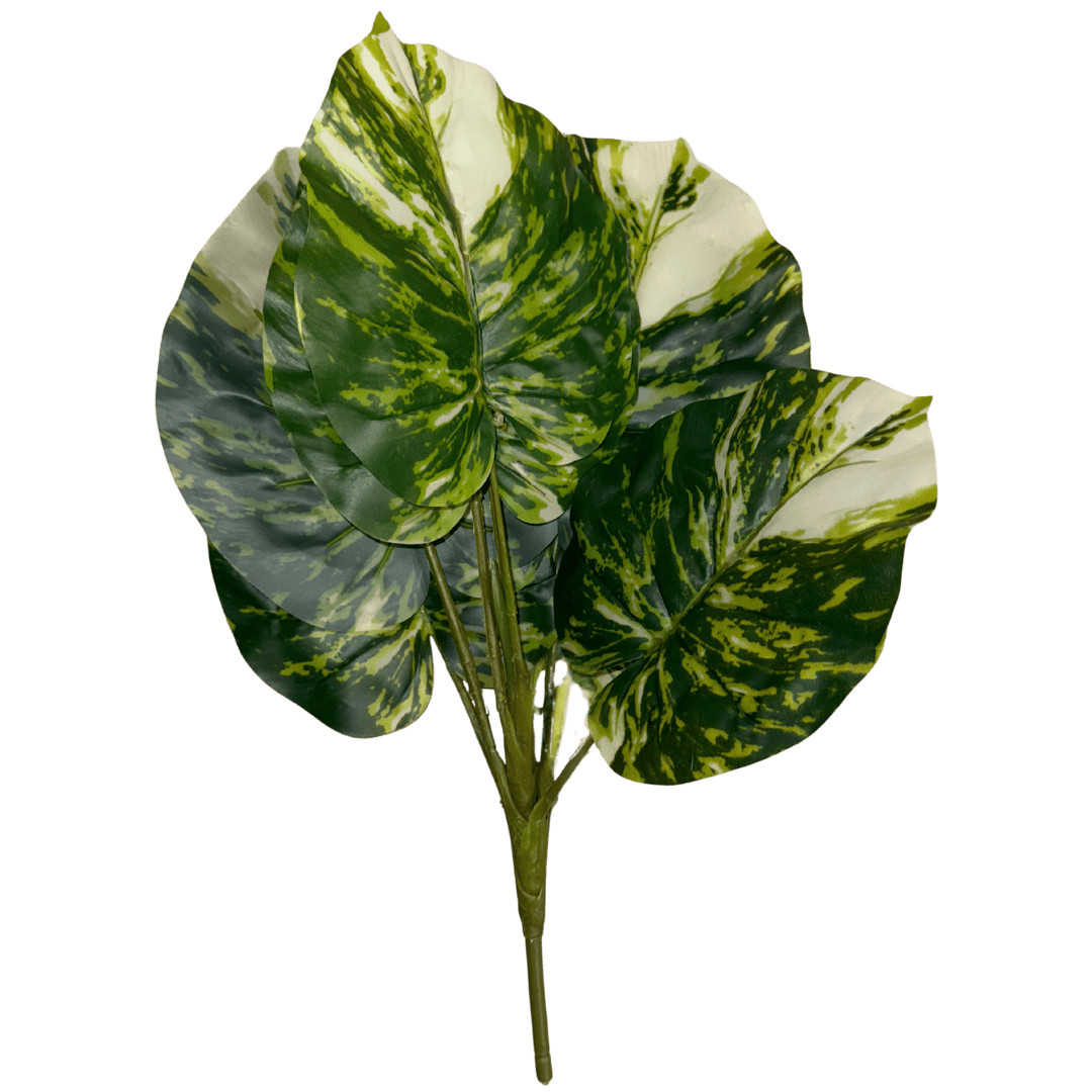 Ajoutez du volume et une touche exotique à vos décorations avec ce feuillage artificiel Alocasia variegata. Ses grandes feuilles marbrées de vert et de blanc offrent un rendu réaliste et élégant, parfait pour garnir un vase, composer un bouquet ou compléter une décoration tropicale. Durable et sans entretien, il garde son éclat dans le temps, idéal pour la maison, un bureau, un hôtel ou un événement.