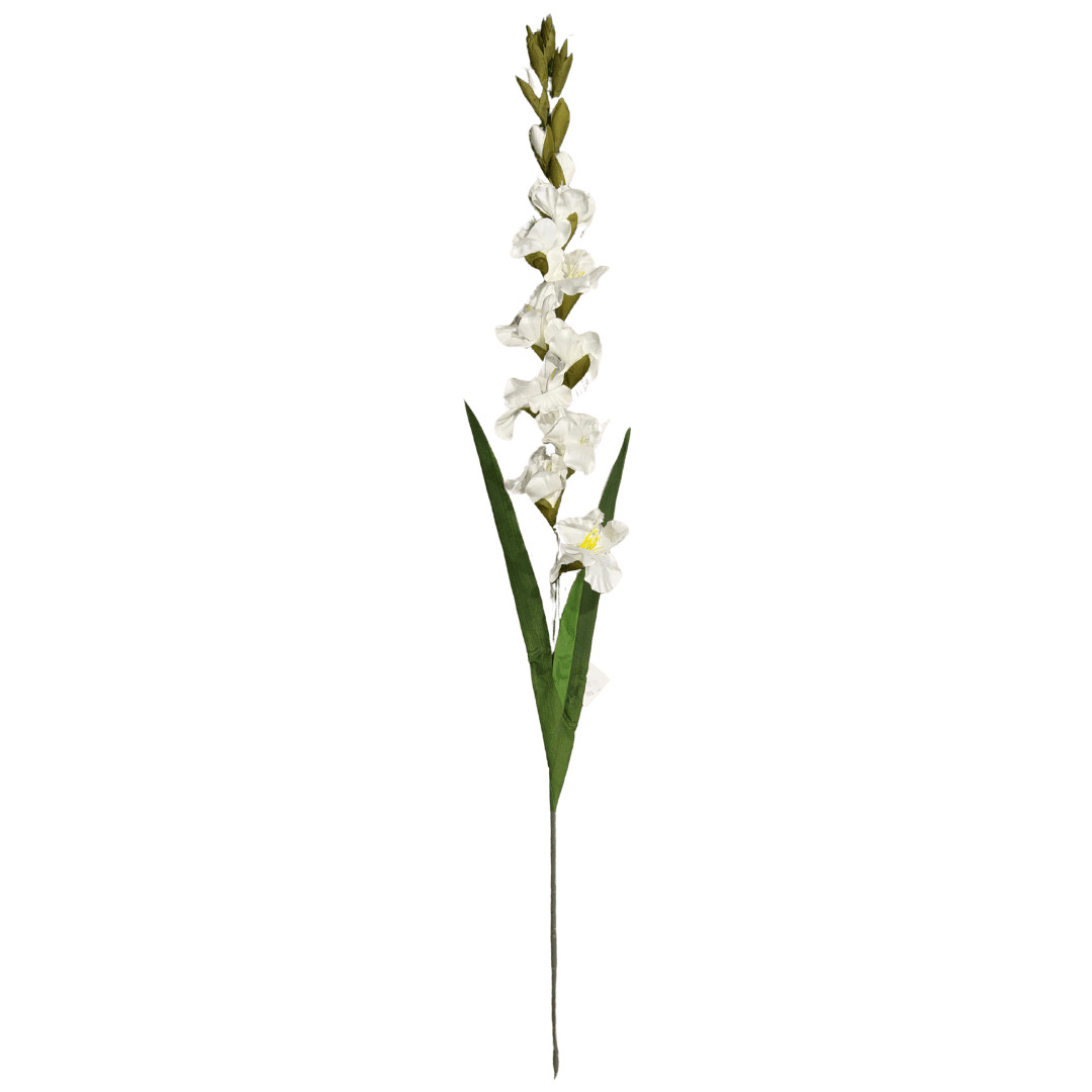 Élégante tige de glaïeul artificiel blanc, symbole de pureté et de sérénité, parfaite pour vos compositions florales, décorations intérieures ou arrangements funéraires.