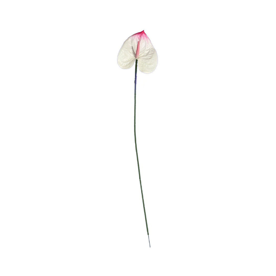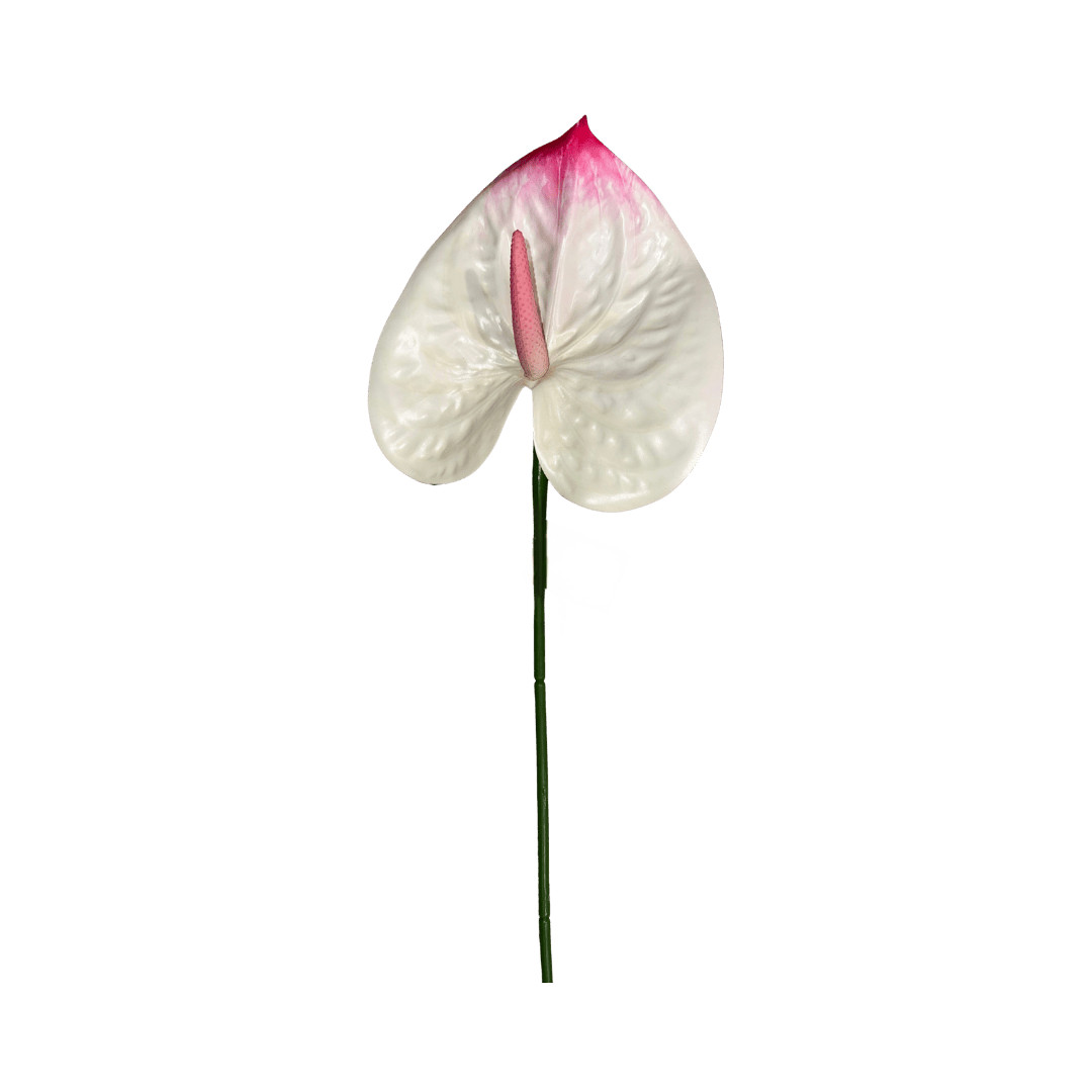 Tige d’anthurium artificiel blanc nuancé de rose, au rendu raffiné et naturel. Parfaite pour des compositions florales élégantes et harmonieuses.