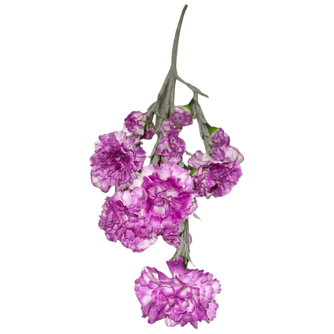 Tige d’œillet artificiel violet et blanc, idéale pour vos compositions florales, bouquets colorés et décorations de Toussaint.
