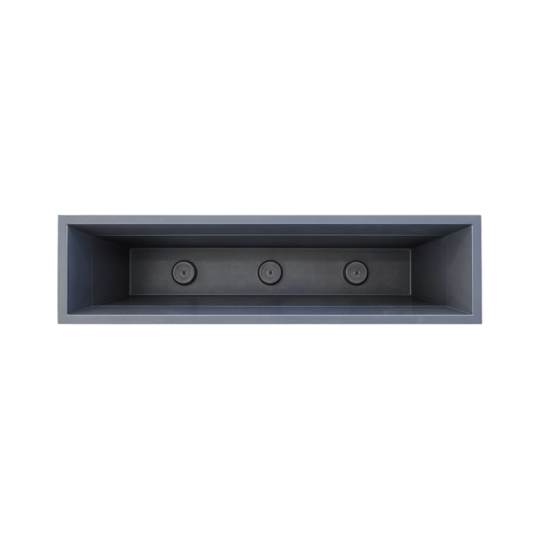 Jardinière rectangulaire gris béton 63L, idéale pour grandes compositions végétales.