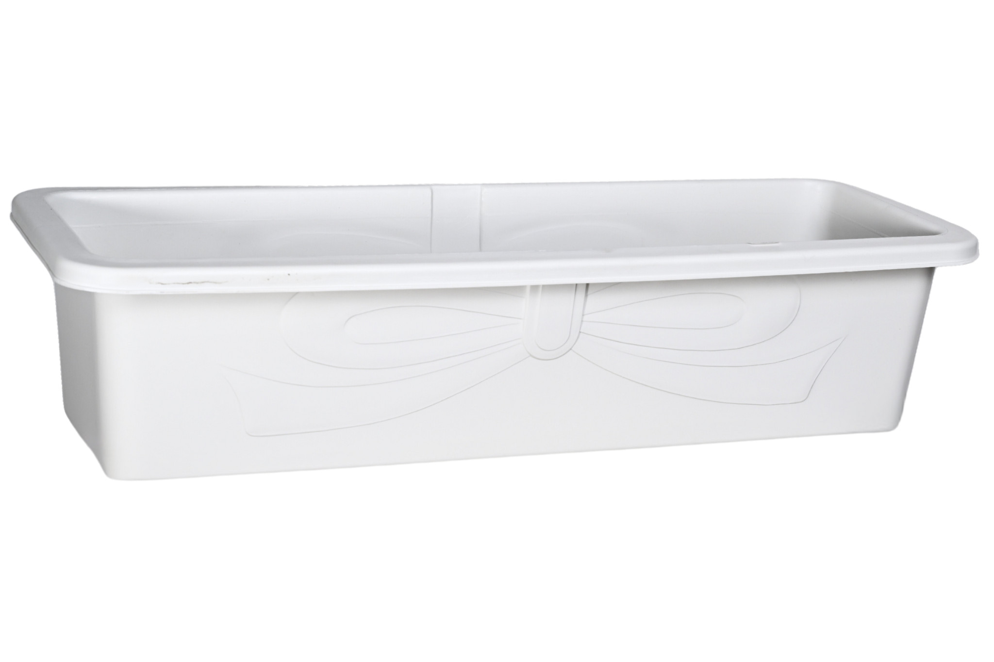 Jardinière rectangulaire blanche en plastique rigide, idéale pour la culture des plantes, fleurs et légumes en intérieur comme en extérieur.