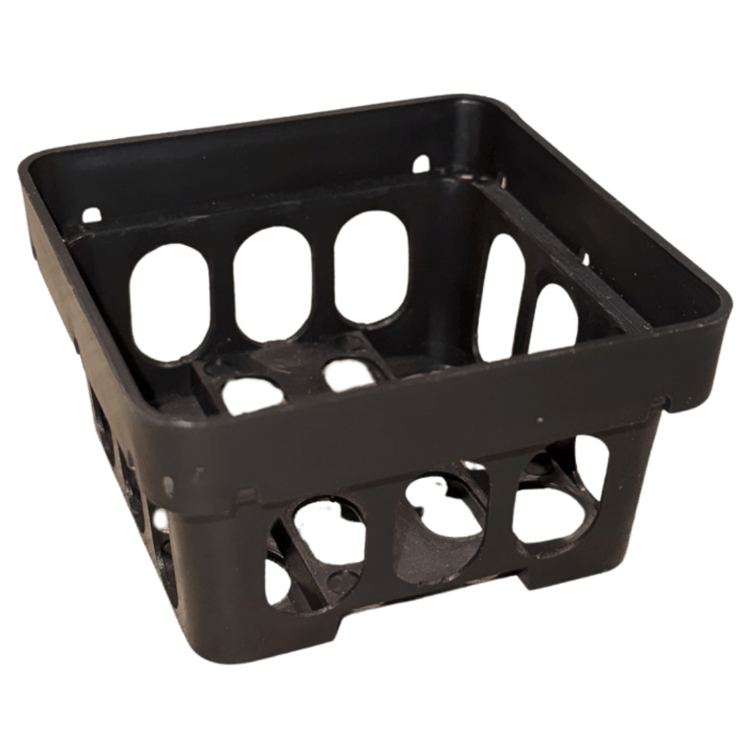 Petit pot ajouré en plastique, idéal pour favoriser la croissance et l’aération des racines d’orchidées.