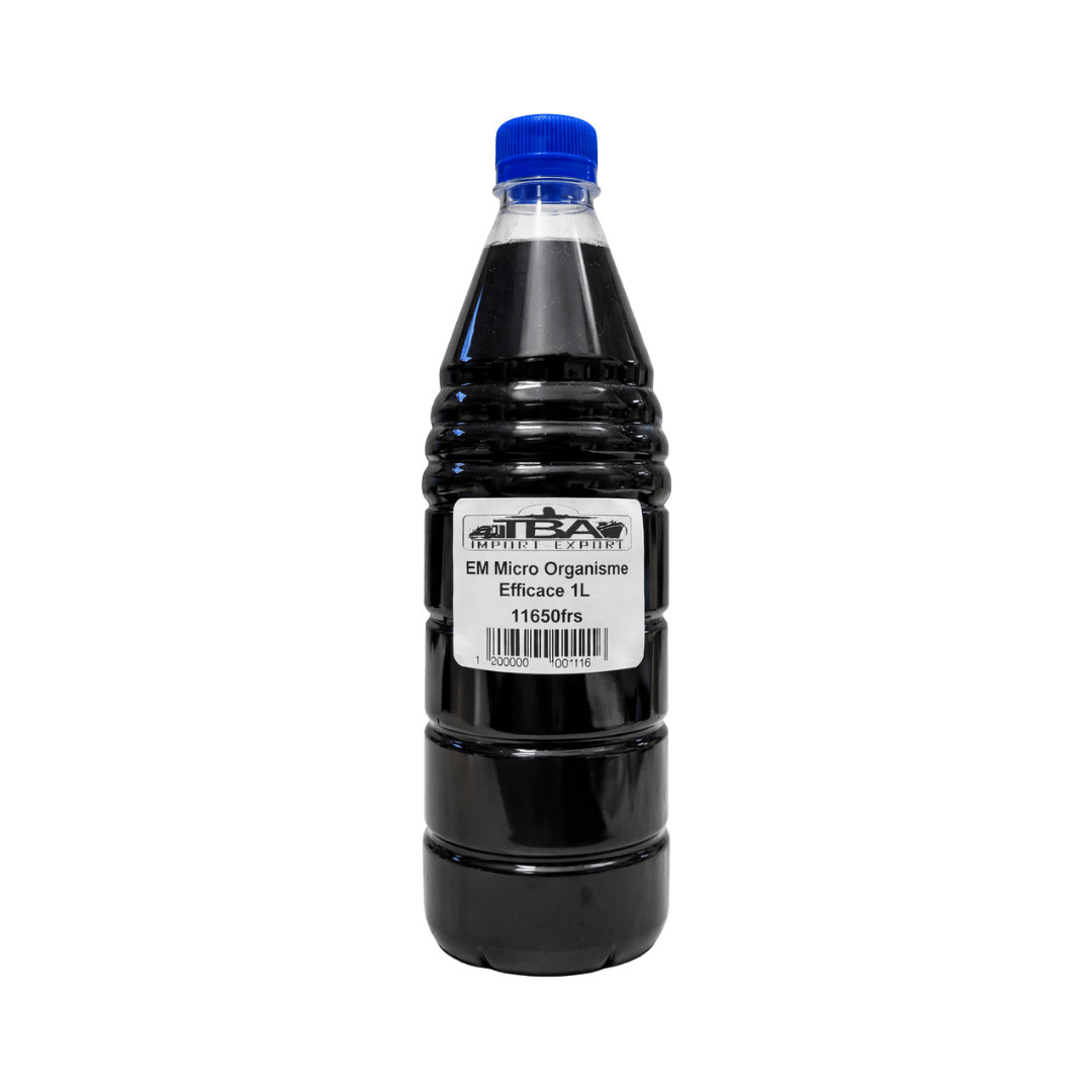 Solution concentrée de micro-organismes efficaces (EM) en format 1L, idéale pour revitaliser les sols, stimuler la croissance des plantes et améliorer la vie microbienne.