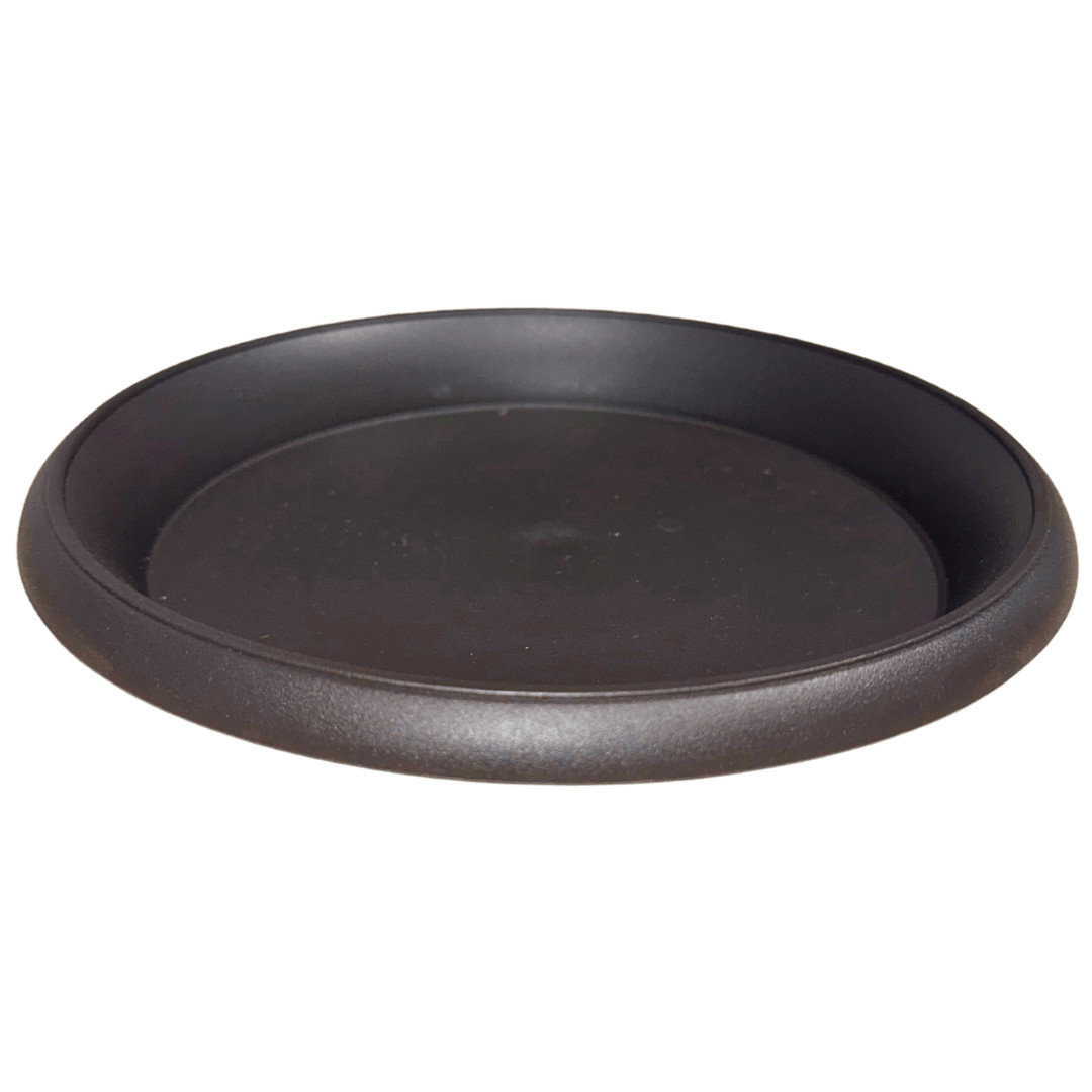 Soucoupe ronde en plastique noire, idéale pour récupérer l’excès d’eau et protéger vos surfaces.