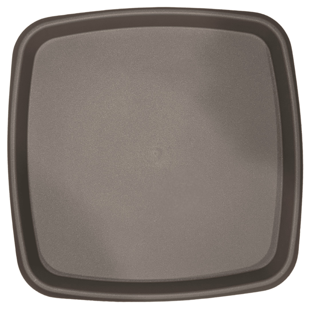 Soucoupe carrée en plastique coloris café, idéale pour récupérer l’eau d’arrosage et protéger vos surfaces.