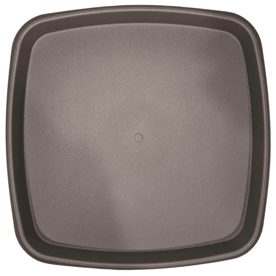 Soucoupe carrée en plastique coloris café, idéale pour récupérer l’eau d’arrosage et protéger vos surfaces.
