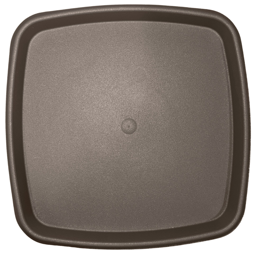 Soucoupe carrée en plastique coloris café, idéale pour récupérer l’eau d’arrosage et protéger vos surfaces.